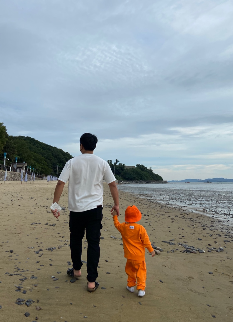 서쪽하늘로 노을은 지고~ 유명한 노래가 생각나는 그곳 강화도 동막해수욕장에 왔습니다. 모래놀이도 작은 물고기, 꽃게도 잡아보고 갯벌로 변한 바다뻘에서 시간이 너무나도 잘가던 동막해수욕장. 바로 앞에 손과 발을 닦을수 있는 수도관들이 여럿있어서 씻는건 어렵지 않았지만 3살 우리 아이는 대환장 파티를 보여줬습니다.