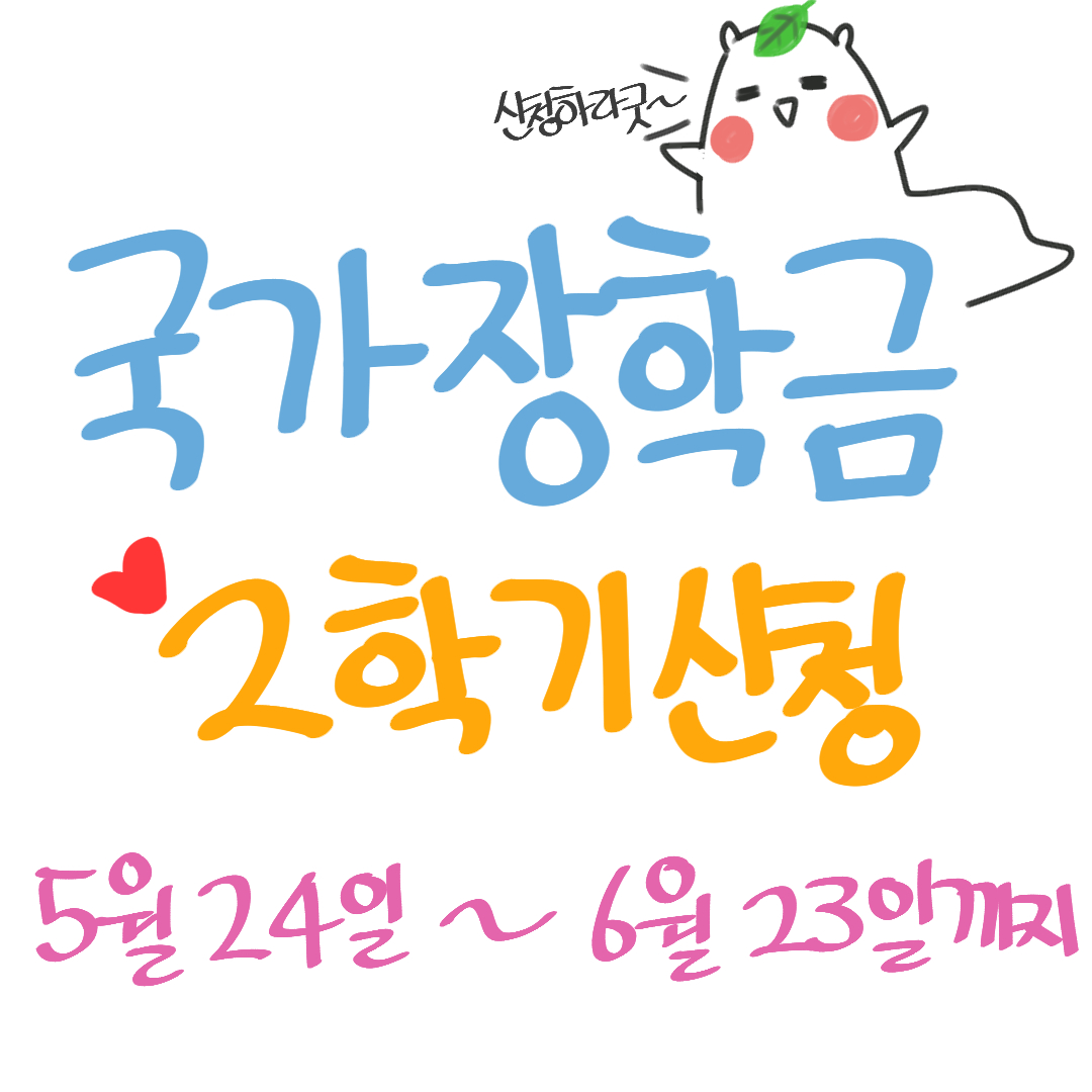 드디어! 장학금 1차 신청이 시작되었습니다. 국가장학금 2학기 신청은 5월 24일부터 6월 23일 까지입니다.