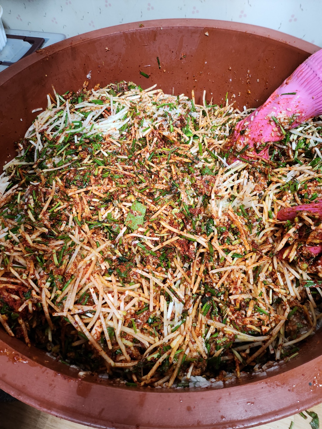 생새우도 생새우지만 그만큼 맛있게 만드는건 육수도 한몫합니다. 육수에 무엇을 넣는지에 따라 맛도 달라지고 시원함도 달라집니다. 그리고 속재료 기본적으로 무, 쪽파 등등을 넣고 만들지만 지역마다 넣는것도 천지차이여서 취향에 맞게 넣어주시면 최고입니다. 매실과 액젓도 잊지마시구요.