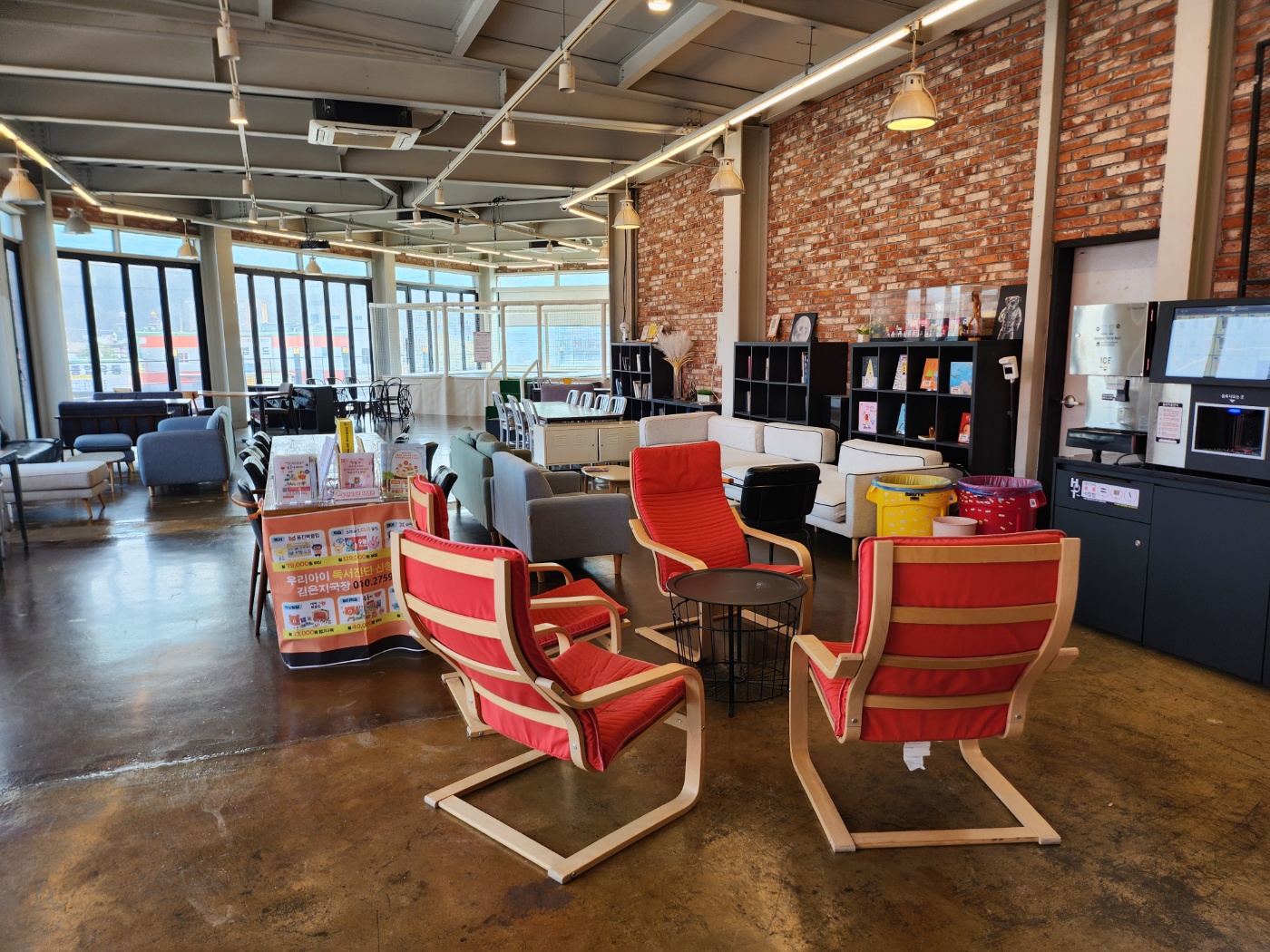 편편집에서 같이 운영하기때문에 식사를 다 하시면 2층으로 올라가 무인카페를 즐기시는 것도 추천드립니다. 1층 놀이방에 부럽지 않을정도로 대형 방방이가 있어 2층에서도 아이가 놀수 있고 카페자리가 넓어 가족들 다같이 이용하셔도 자리가 부족하지않고 여유있었습니다.