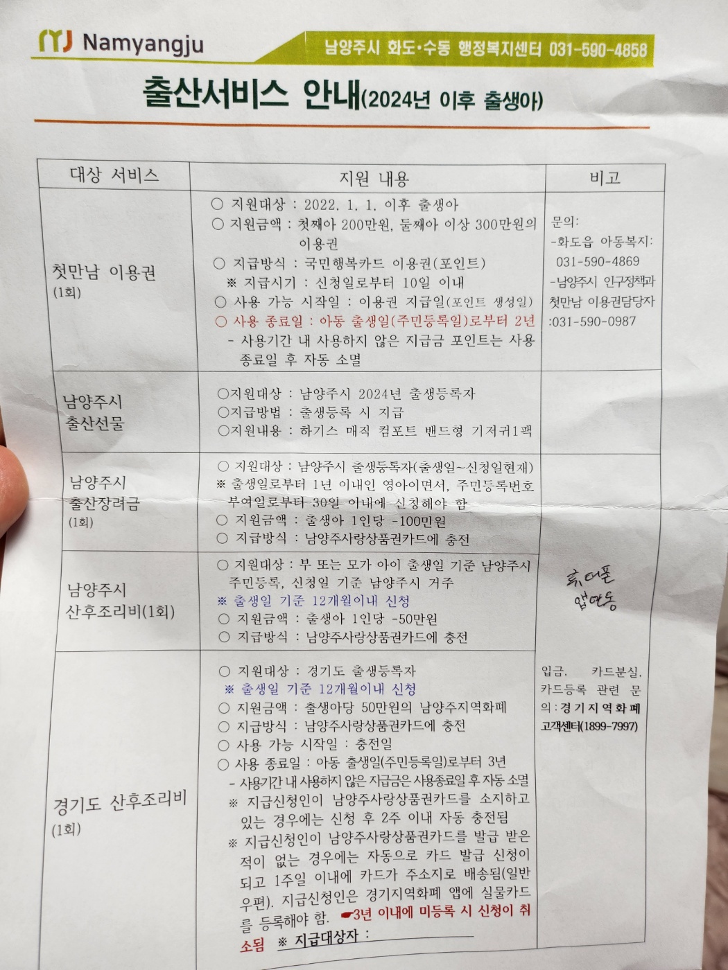 남양주 출산지원금 출산장려금, 남양주 산후조리비,경기도 산후조리비