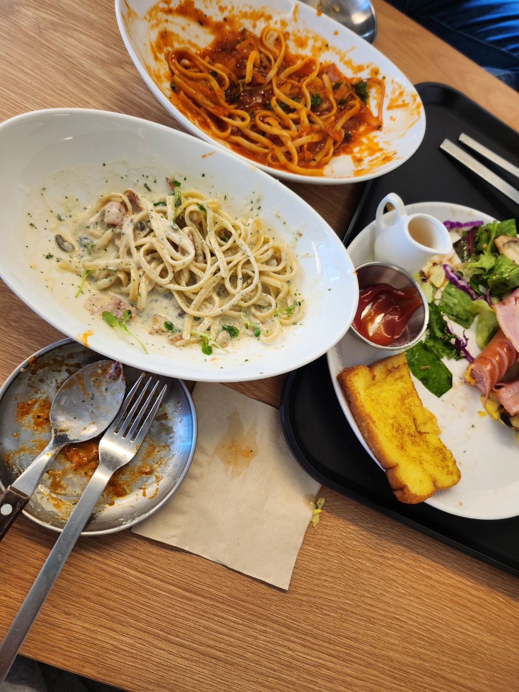 가격이 놀라웠던게 11시부터 2시까지는 만원의 행복으로 메뉴가 만원입니다. 그래서 둘이서 먹지만 3개를 주문하고 빵도 하나 같이 추가해서 먹었는데 너무 맛있어서 과식했습니다. 임신중이라 조금만 먹어도 속이 더부룩한데 이렇게까지 많이 먹을줄이야 스스로도 놀랐지만 돈도 절약하고 훌륭한 데이트를 했다는게 더 뿌듯했습니다.