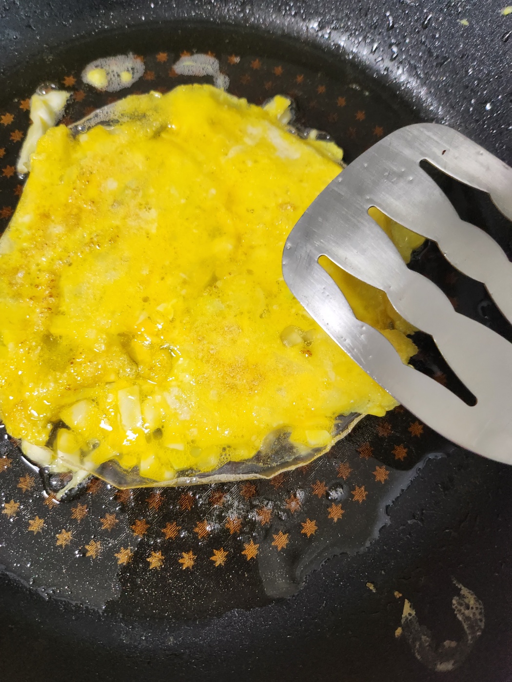 불은 약불로 하신다음 기름을 조금 뿌려주세요. 올리브유가 다이어트에 그나마 좋습니다. 계란에 양배추 썰은걸 넣고 섞은다음 후라이팬에 라이스페이퍼를 올리고 바로 계란양배추를 올려서 빨리 펴주셔야합니다! 안그러면 라이스페이퍼가 금방 쪼그라들고 튀겨지듯히 바껴서 빠르게 못할꺼 같으신분들은 불을 꺼놓고 해주시면됩니다.