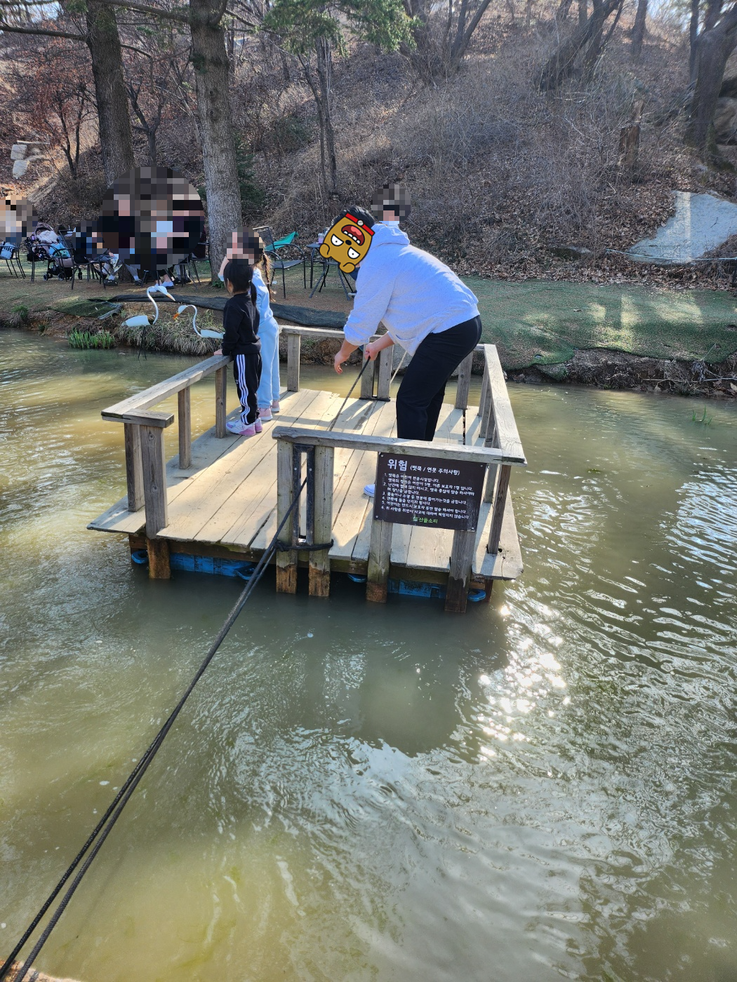 작은 연못을 줄로 건너는 배놀이도 있고 이 연못에는 개구리알이 가득있고 올챙이들도 많아 옛날느낌 즐기면서 올챙이 잡기도 할수있습니다. 그대신 올챙이는 잡고 다시 놓아주세요! 아이들이 올챙이를 보면서 신기해하고 직접 가까이서 볼수 있는 기회가 요즘은 흔하지 않아서 그런지 더 좋아했습니다. 배타기도 재밌지만 이용사항 꼭 읽고 이용하세요! 안전필수!