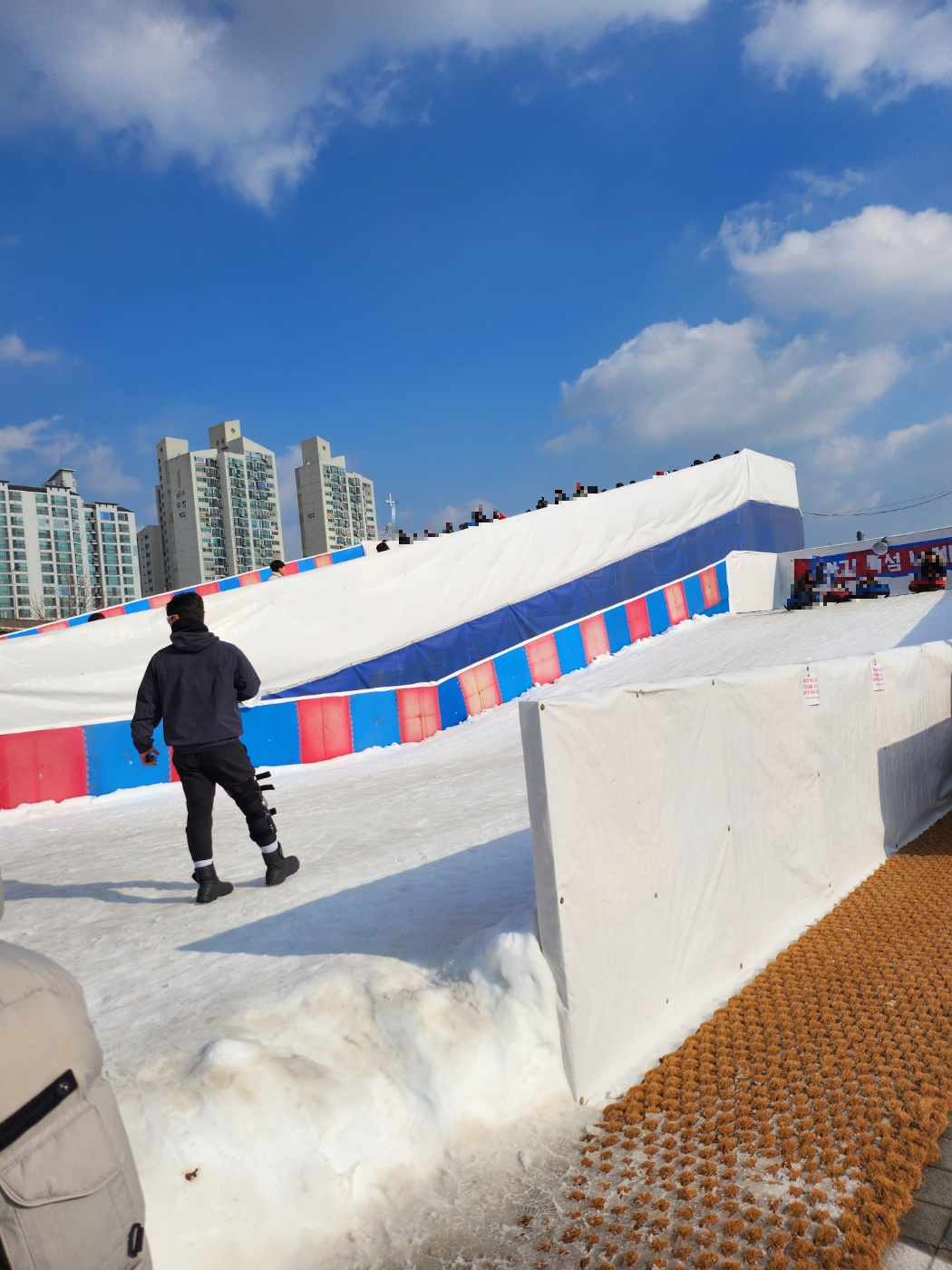눈썰매장에 가서 보니깐 가족들도 많고 데이트하러온 사람들도 많아서 골고루 사람비중이 섞여있습니다. 그리고 평일에 가야 그나마 덜기다리고 탈수 있다는점, 그리고 높은 성인코스는 현수막에 7세부터 가능하다고 적혀있지만 그 아래 아이들도 전부 이용했었습니다.