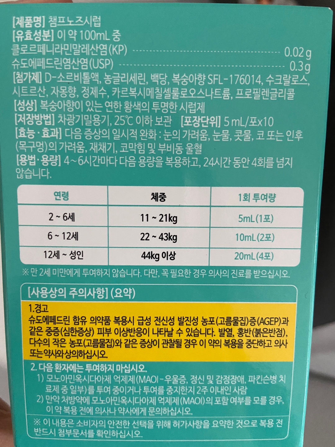 챔프 해열제 빨강,파랑은 자주봤지만 기침.가래 코프시럽과 콧물.코막힘 노즈시럽은 처음보았습니다. 혹시나 하는 마음에 하나씩 구매했고 뱡원약을 다먹고나서도 감기는 그대로 였습니다. 열나는거만 해열제로 금방 잡혔지만 콧물과 기침 가래는 좋아지지 않았습니다.