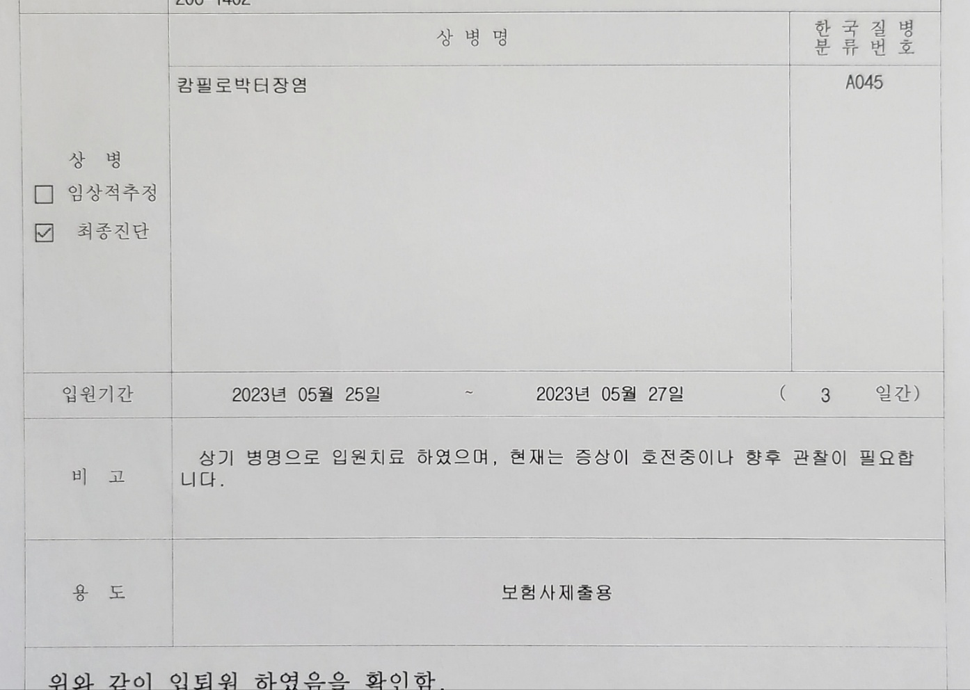 갑자기 입원하는데 아이걱정도 아이걱정이지만 시기가 정말 안좋은 일은 한번에 다 온다더니... 팔이 완전히 뿌러져버린 엄마는 통깁스를 한지 얼마되지 않아 아이가 캄필로박터균으로 입원하게 돼서 돈걱정도 많이 됐습니다. 나중에 개인실비나 보험하면 되겠지 하시겠지만 한번도 해본적이 없어 나와도 조금 나오겠구나 해서 한편으로는 무겁기도 했습니다.