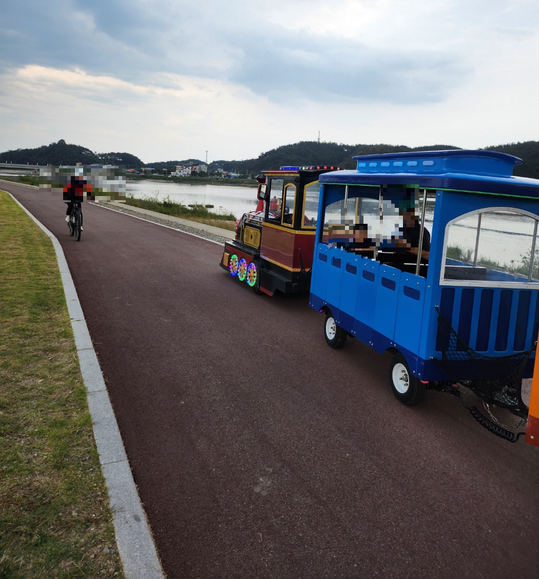 기차는 1인당 3000원 입니다. 하지만 굉장히 멀리까지 간다는점! 700미터 거리를 왕복하며 오전10시부터 오후17시 까지 운행합니다. 천천히 위험하지않은 속도로 운행되기 때문에 아이들도 어른들도 축제및 남대천 풍경을 감상하실수 있습니다. 선선하니 저는 너무 좋더라구요. 아이도 아주 좋아해서 비용도 적절하다는 생각이 들었습니다.