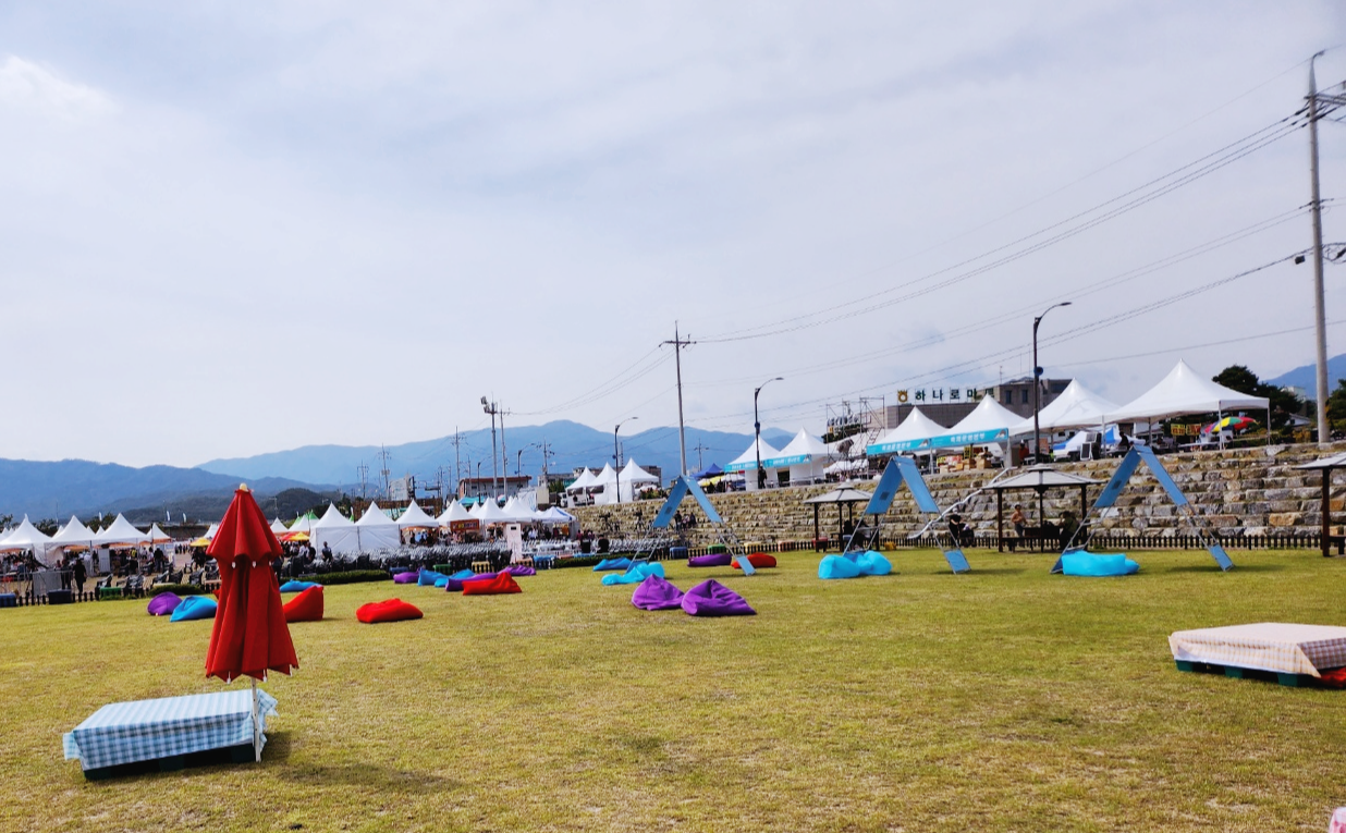 여행오면 당연히 빠질수 없는 인생샷! 포토존도 굉장히 많고 힐링하며 쉴수있는 곳도 넓어서 좋았습니다. 서울 한강공원 부럽지 않은 양양 수변공원! 아주 잘 꾸며져 있어 평소 데이트나 산책나오기에도 이쁜곳입니다. 축제를 위해 에어쿠션등 파라솔 평상과 잔디쿠션등이 있고 여기에 아이들 어른들 하기좋은 간단한 놀이도 함께 있습니다.