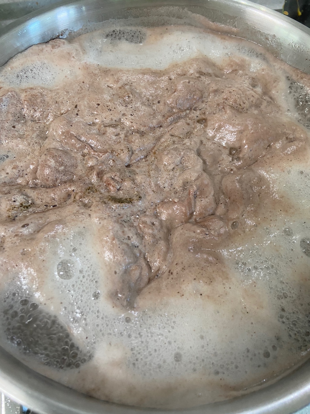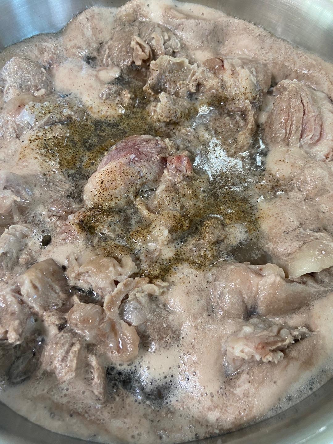 스지는 구워서 절대 먹을수 없는 부위입니다. 그렇기 때문에 국으로 오래끓일수록 그 어떤 부위보다 부드러워지는게 스지 입니다. 그래서 스지만 먼저 40~50정도 끓입니다. 물에 맛술이나 소주등을 넣어주시고 후추도 넣어주시면 좋습니다 그렇게 끓이면서 거품은 전부 버려줍니다.