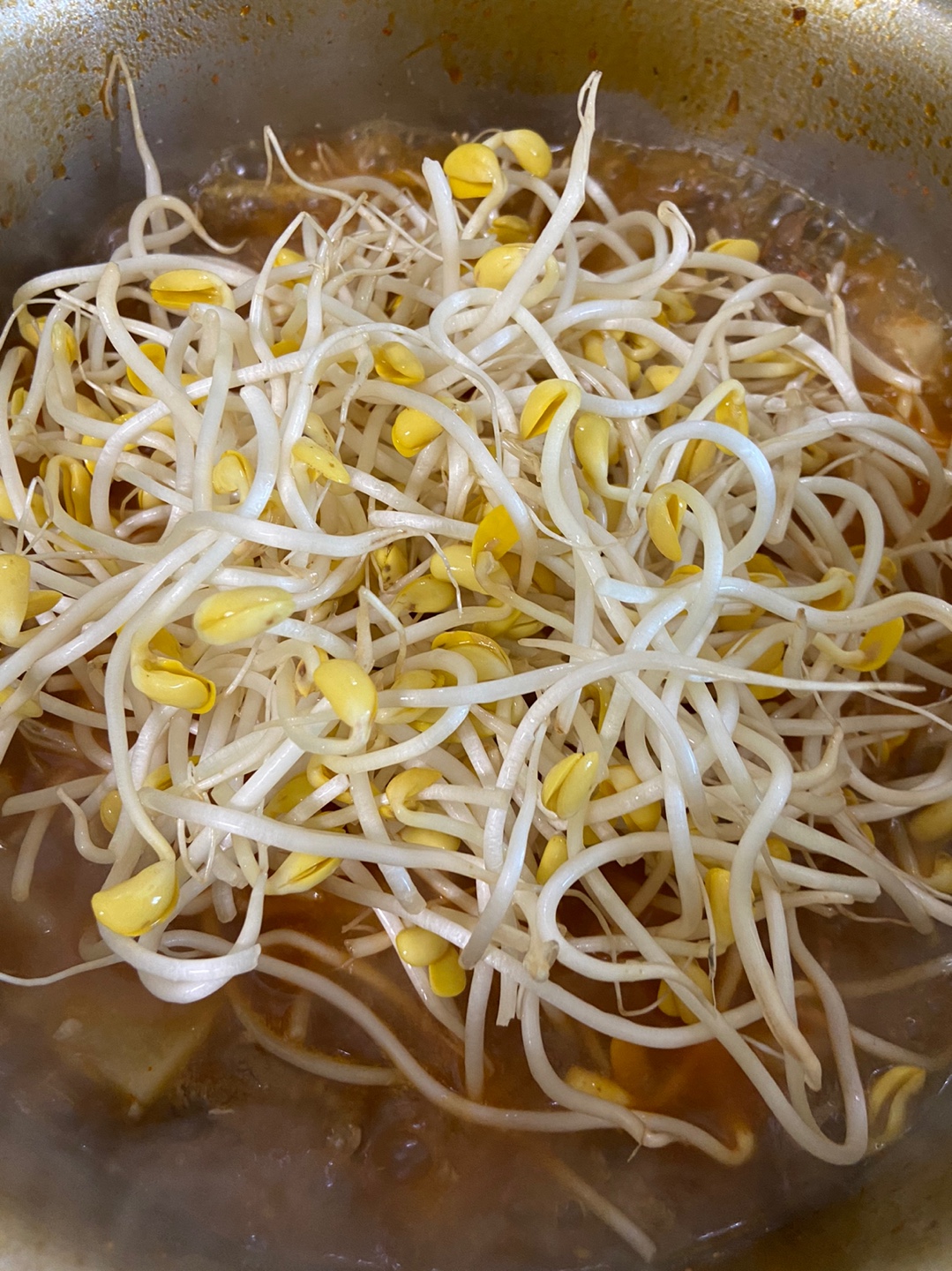 그렇게 마지막에 콩나물을 넣고 끓여주면 맛있는 감칠맛 나는 얼큰소고기장터국 완성 입니다.! 간이 부족하신분들은 소금과 액젓을 넣어 맞춰주세요! 기호에 맞게 후추도 살짝 뿌리면 좋습니다. 스지는 끓일수록 야들야들해지기 때문에 말랑말랑한 고기 좋아하시는 분들께는 최고입니다. 맛있는 식사 하세요.