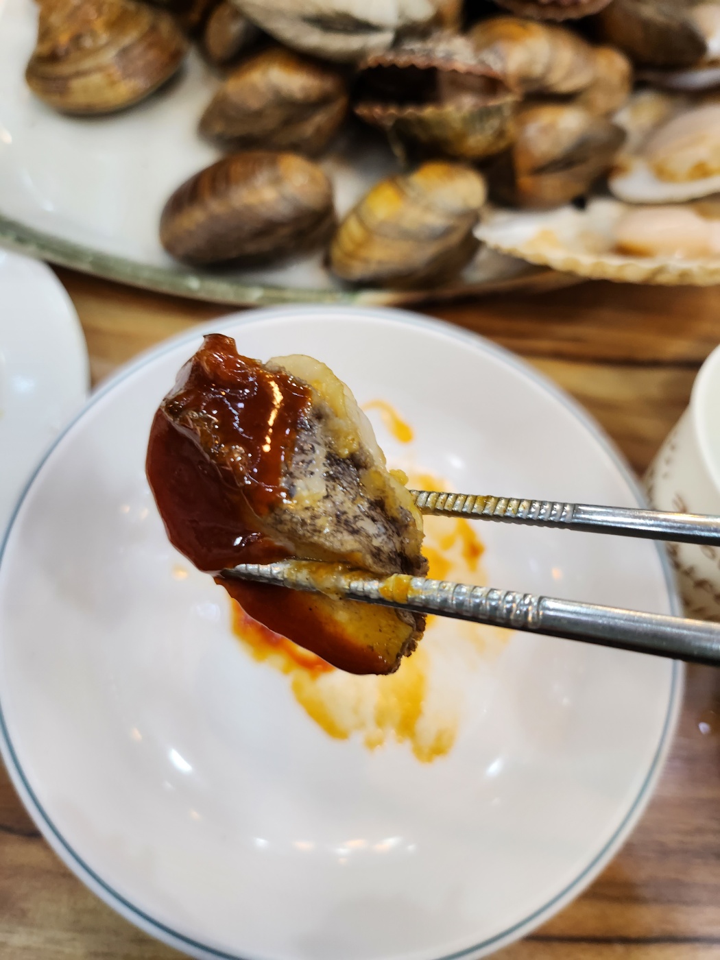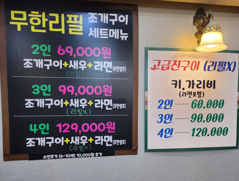 조개껍질 쌓인 통부터가 굉장히 큰통인데 조개들이 전부 큰조개가 많아서 더 배불렀던거 같습니다. 작은조개는 잘 안주시기때문에 구울때 편하다는점! 저 통 가득 먹얶다는것도 신기하고 기본 무한리필가면 4~5번 먹는 우리였는데 한번밖에 리필 못할정도로 배부르고 좋은 곳이였습니다.