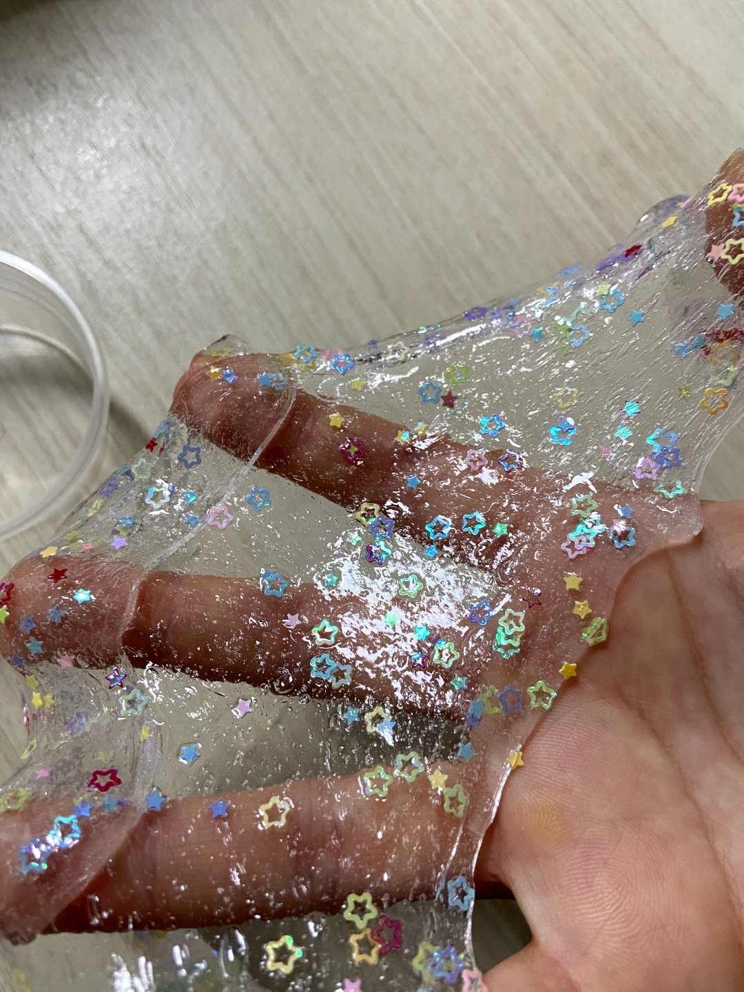 입으로 가져가는 아이는 사용하지 않는게 좋습니다. 그리고 옷에 붙으면 스며들어서 떼어내기 힘들어 조금 번거로워질수 있습니다. 반짝이는 가루등 작은 비즈는 슬라임을 넓게피고 가운데에 뿌려주세요. 밖으로 너무 나오면 치우기 힘들다고 느끼실수 있습니다. 하지만 아이가 노는데 차라리 즐거운게 나으다고 생각하기 때문에 뒷정리 생각하지 마시고 촉감놀이로는 제일 좋다고 생각합니다.