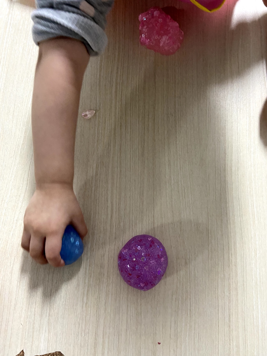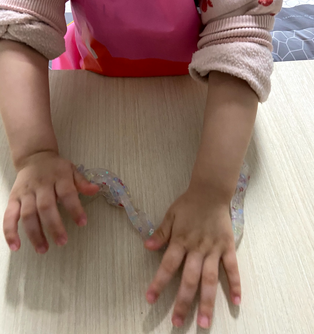 구성품중에 구슬이나 딱딱한 빤짝이 조각들이 많이 들어있어 함께 넣어주면 아이가 더 잘 가지고 놀기도 합니다. 만질때 여러가지 소리가 나기도하고 만질때 느낌이 신기해서 한번주면 혼자만의 시간을 잠시 가질수 있습니다. 보통 슬라임이나 저렴한 장난감에는 안좋은 성분이나 몸에 안좋다고 싫어하시는 분들이 많기도 하지만 입에 가져가는 버릇이 없다면 놀고나서 손만 잘 씻으면 아주 좋은 장난감입니다.