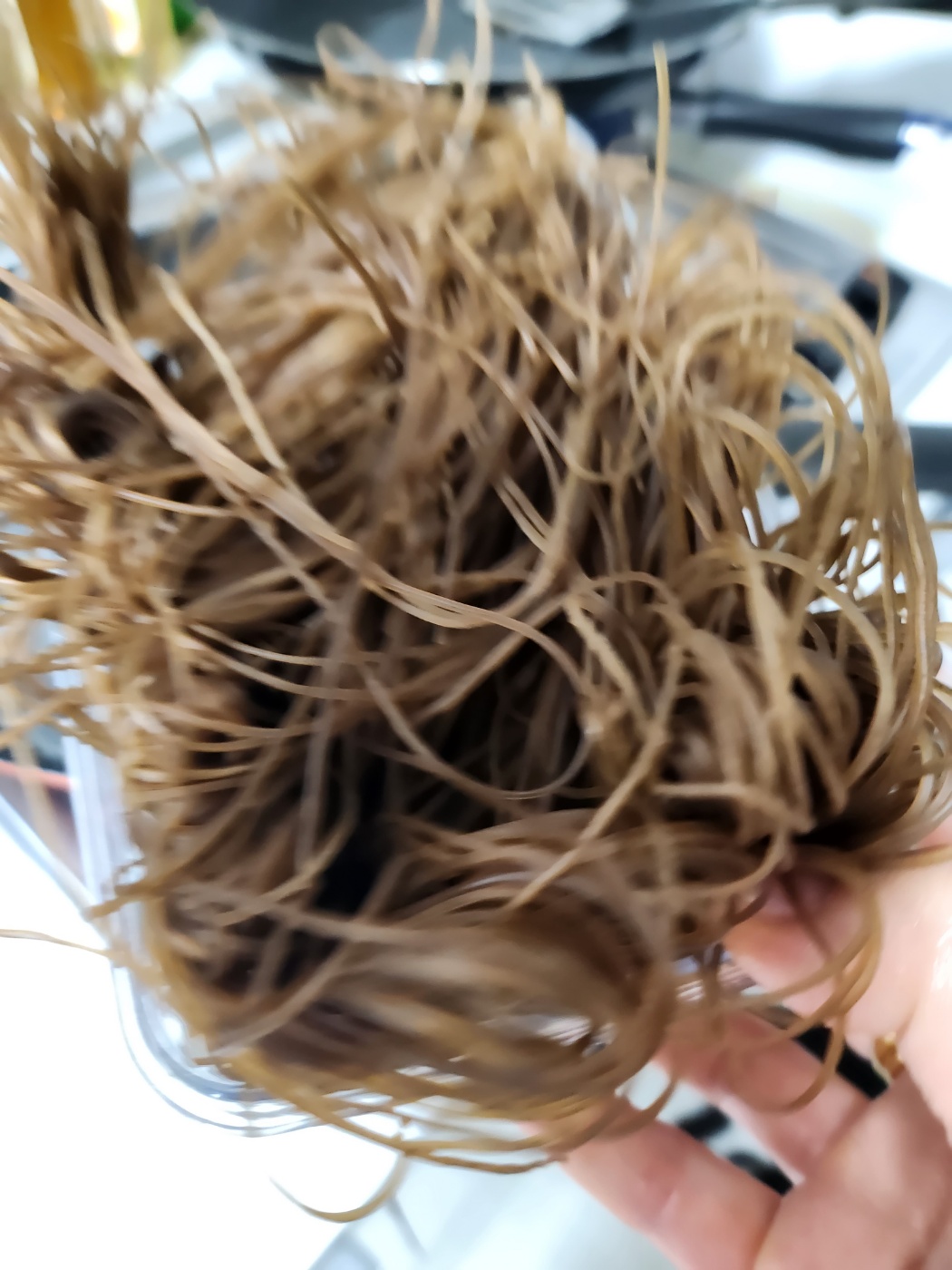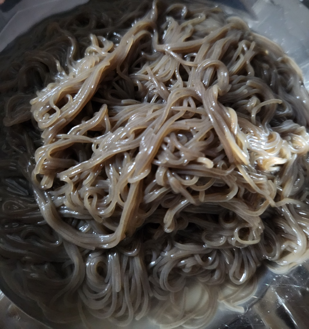 어쩌다면 흔하다고 할수있지만 알려드려요. 보통 냉동으로 보관하기 때문에 덩어리채로 꺼내서 먹을 준비를 합니다. 하지만 이 덩어리채로 넣으시는분들이 은근 많다는점! 물에 씻어서 손으로 누르고 으깨듯이 면을 사진처럼 풀어주신다음 하셔야 뭉치지 않고 실패없는 냉면사리를 만드실수있습니다.