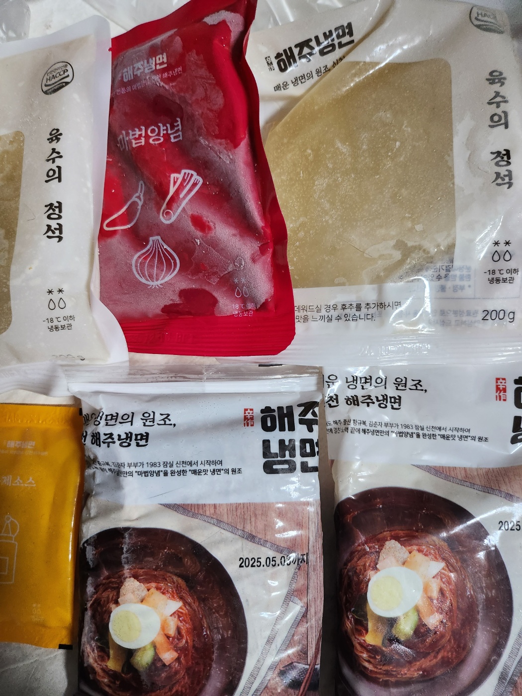 2만원초에 6인분 해주냉면은 마법양념,겨자소스같은양념과 냉면사리,육수까지 진짜 혜자라고 볼수있는게 양이 적은것도 아니고 너무 맛있게 매워서 중독성이 심해서 자꾸 먹게 되는 최애식품입니다. 여름에 요즘 시켜먹으려면 배달비에 가격도 올라서 비싸고 냉면하나 먹는데 만원넘게 써야하는점 아시죠? 이럴때 아주 손쉽게 집에서 만들어 드실수 있습니다.!