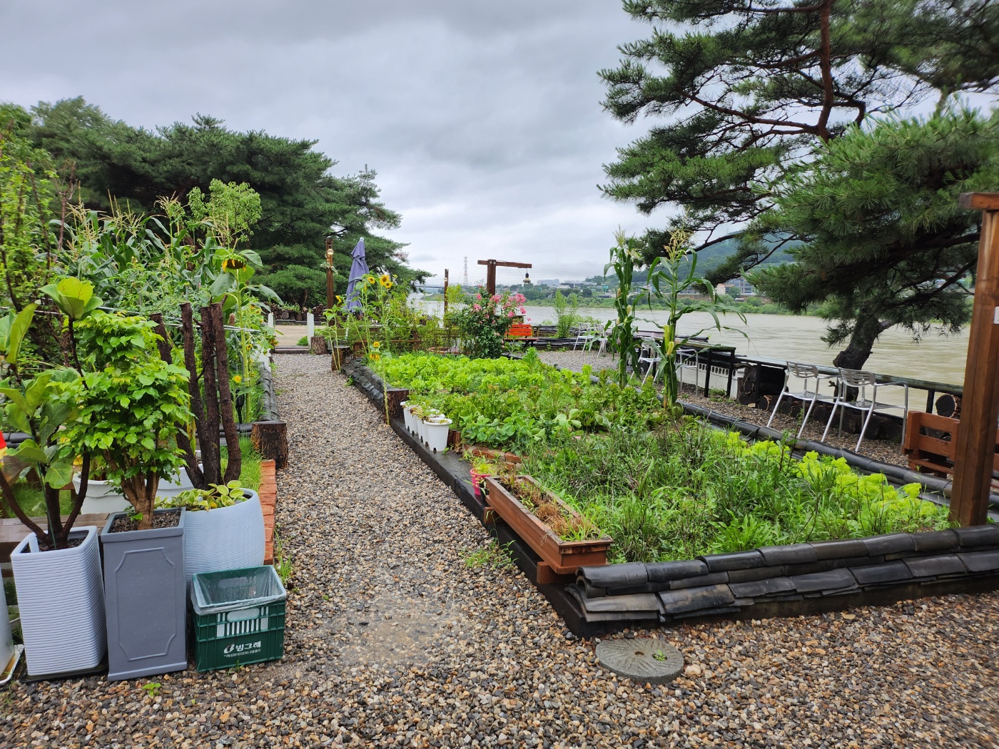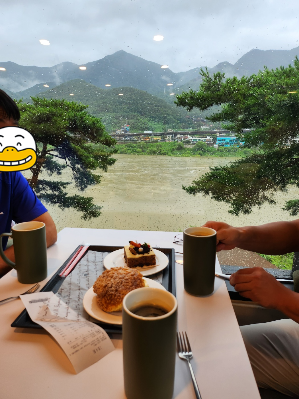 저희가 갔을때는 장마철이라 물이 흙탕물이지만 그래도 이쁘고 힐링될정도로 뷰맛집이라 맑을때 가면 더 좋을꺼 같습니다. 그렇다고 흐릴때는 흐릴때만의 분위기가 있으니 원하실때 골라서 가보세요. 야외에서 먹는것도 운치있고 좋기때문에 실내에서 먹다가 야외에서도 드시는걸 추천드려요. 그대신 드셨던 자리는 깨끗하게 정리 아시죠?