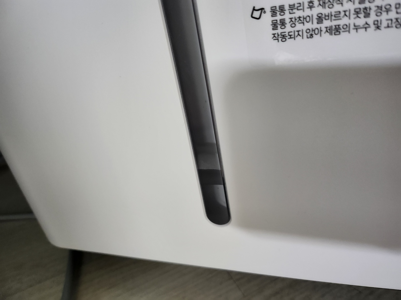 저희집 얼마나 습했던걸까요. 잠깐 몇시간 돌려봤는데 금방 물이 차올랐습니다. 뒤에 통도 아주 손쉽게 꺼낼수있습니다. 꺼내실때는 위 두껑을 살짝 눌러서 꺼내시면 더욱 잘 꺼내집니다. 물을 버릴때도 따로 뚜껑을 열지않아도 버릴수있어 편하고 좋았습니다. 위x아 사용해 보신분들은 두껑이 없으셨던걸 알실텐데요. 저는 지금 한경희제습기처럼 두껑이 살짝 있는게 더 편하고 깔끔해보여서 더 좋은거 같습니다.