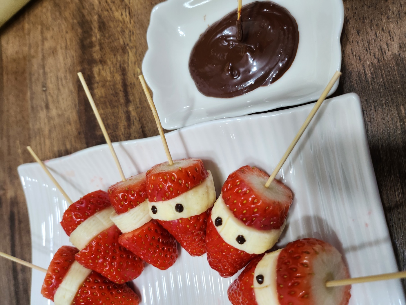 이쁘고 화려하고 그때의 분위기가 있습니다. 와인 홈파티면 와인위주, 크리스마스면 크리스마스 분위기에 맞춰서 준비하기도 합니다. 저렴한 딸기한팩과 2천원대 바나나만 있다면 귀여운 딸기산타 디저트를 완성할수 있습니다. 초콜릿도 아무거나 하나녹여 콕콕 찍어주면 손쉽게 준비끝! 분위기가 생명이니깐 꼭 홈파티 주제를 골라주세요! 생일,기념,와인,한식,등등!